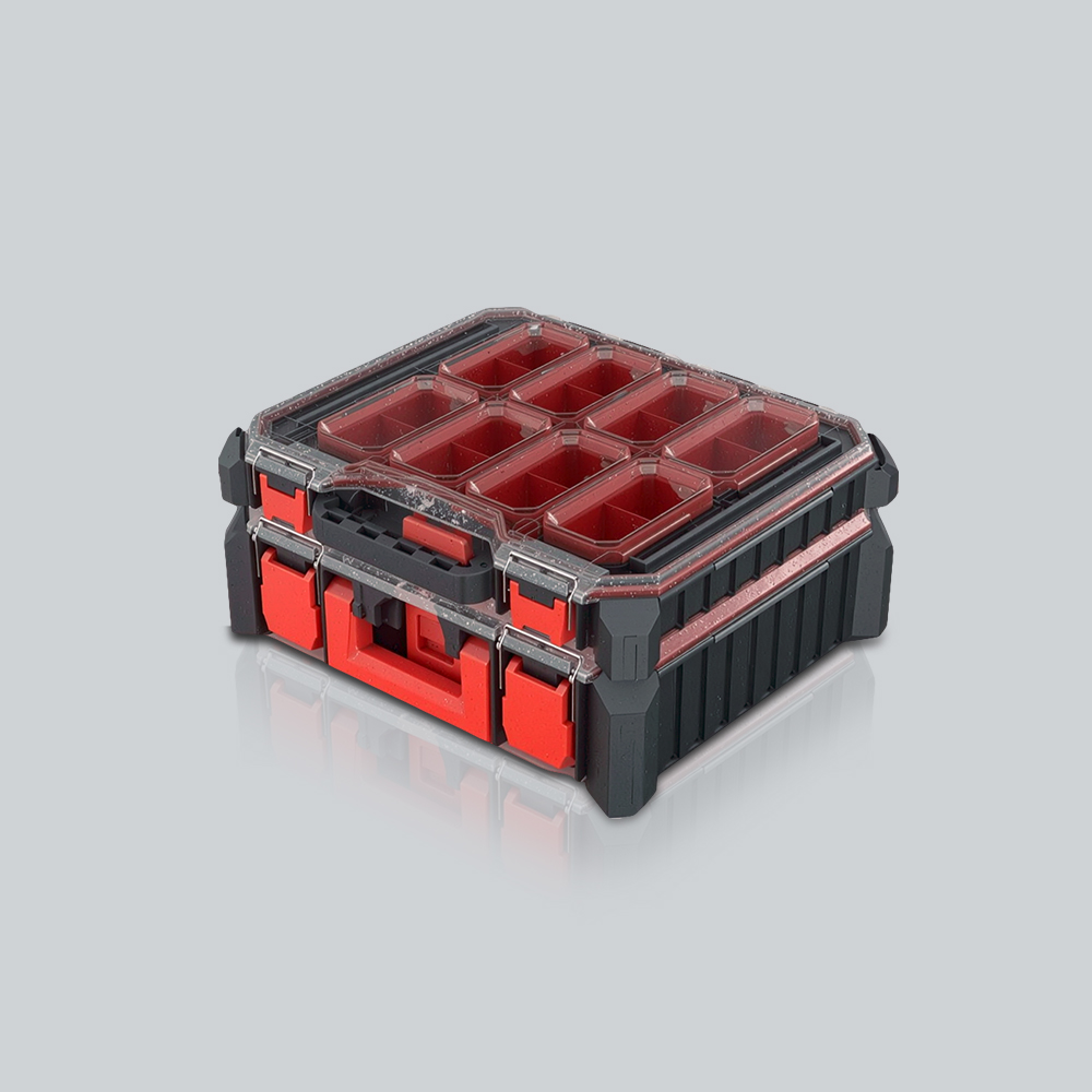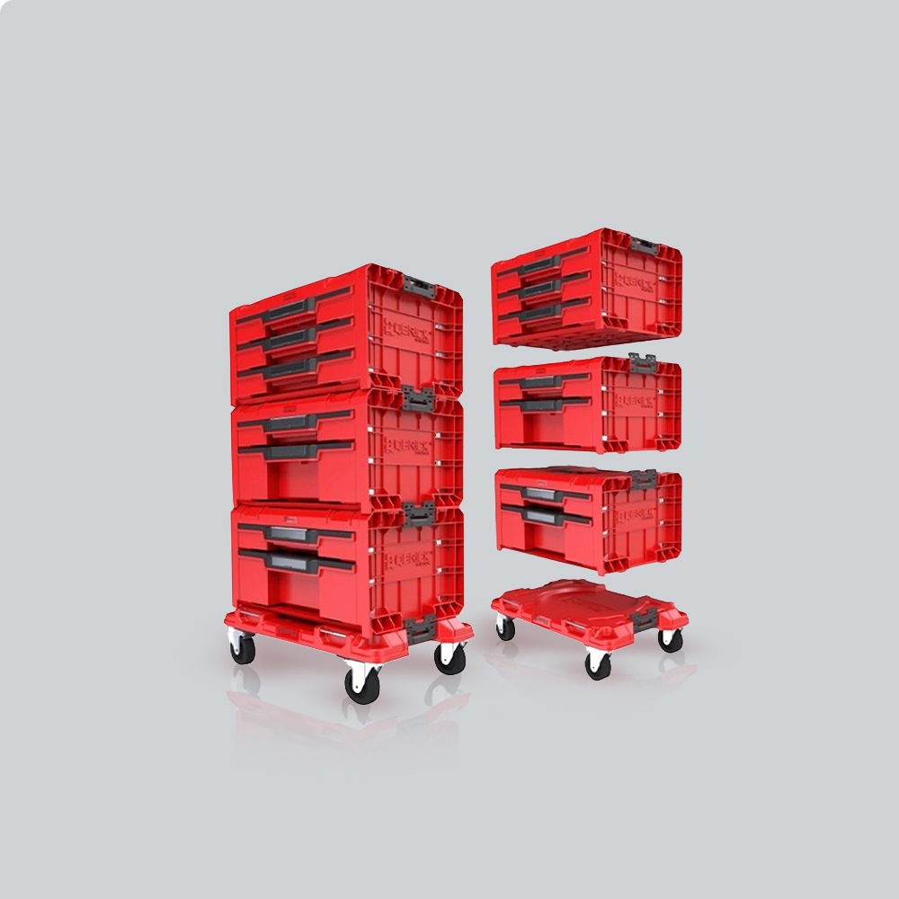 Для професіоналів ми пропонуємо модульні скрині та органайзери – міцні, легкі та функціональні системи зберігання інструментів. Модульне рішення є найкращим варіантом для роботи з легким і компактним набором ящиків для інструментів, збагаченим додатковою функціональністю. Висока вантажопідйомність і довговічність роблять цю серію продукції ідеальною для майстерні.
